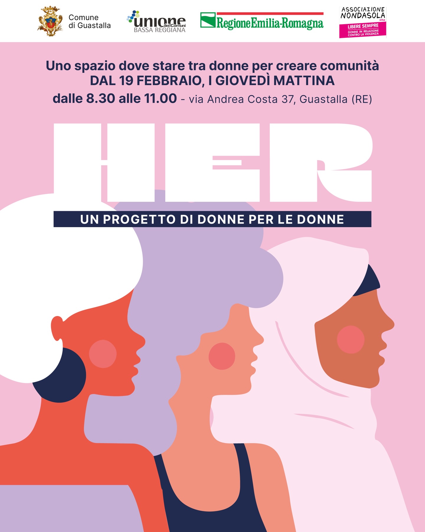 Un luogo fisico per ritrovarsi, uno spazio interpersonale per confrontarsi e una rete di supporto per contrastare l’isolamento. È nato a Guastalla il progetto HER, un’iniziativa “di donne per le donne” che punta a rafforzare il tessuto sociale e relazionale del territorio.