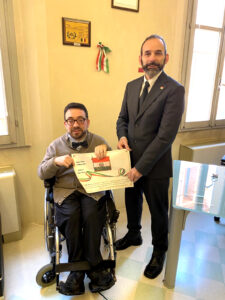 Nel frattempo ha sempre continuato anche ad impegnarsi per la sua città: Giorgio è stato Scout nei CNGEI, è tutt’ora volontario in Comune nel progetto “Digitale Facile” tramite il quale aiuta persone anziane a districarsi nelle complessità della rete, è stato volontario dell’AUSL nel servizio informazioni agli utenti al SAUB, canta nel coro dell’Università e ora ha raggiunto un ennesimo obiettivo: dopo un corso durato circa 1 anno e aver superato sia l’esame scritto che quello orale, è stato nominato Guardia Ecologica Volontaria, figura di “Pubblico Ufficiale non armato” riconosciuto dalla Prefettura, dove ha prestato il giuramento lo scorso 19 marzo. Giorgio è la prima persona in carrozzina ad aver avuto questo riconoscimento in Emilia Romagna e probabilmente in Italia. Con questo ruolo Giorgio nei mesi scorsi ha fatto vigilanza nei parchi, blocchi stradali per gli eventi, verifica dei protocolli di evacuazione nelle scuole, e tanto altro.